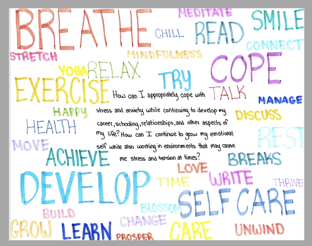 Brainstorm: Concept mapping is an active process that can lead to much self-discovery (Novak & Cañas, 2008). Mapping ideas is essential to self-inquiry and critical reflection, as seeing your thoughts materialize on a page can be therapeutic in itself. Journalling, mapping, and finding other forms of creatively expressing ideas on a page, or any canvas really, helps stress move through the body and leave the system.